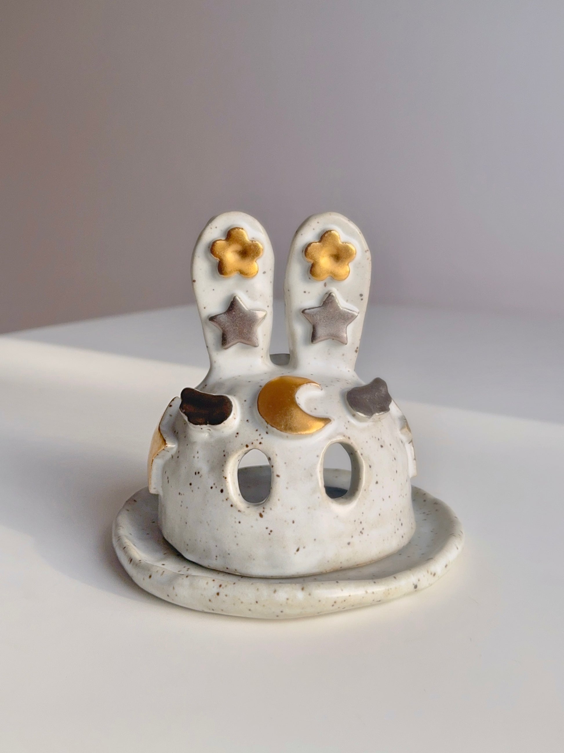 🕯🐰Speckled Matte and Gold BunBun Candle/Incense Holder🐰🕯